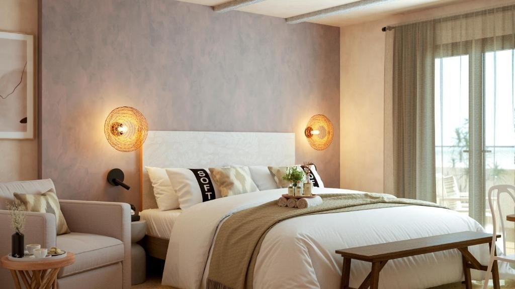 Chaque chambre est conçue comme un hommage à l'essence authentique de l'île, fusionnant la fraîcheur de la mer avec la douce chaleur du soleil pour créer un espace accueillant et relaxant.