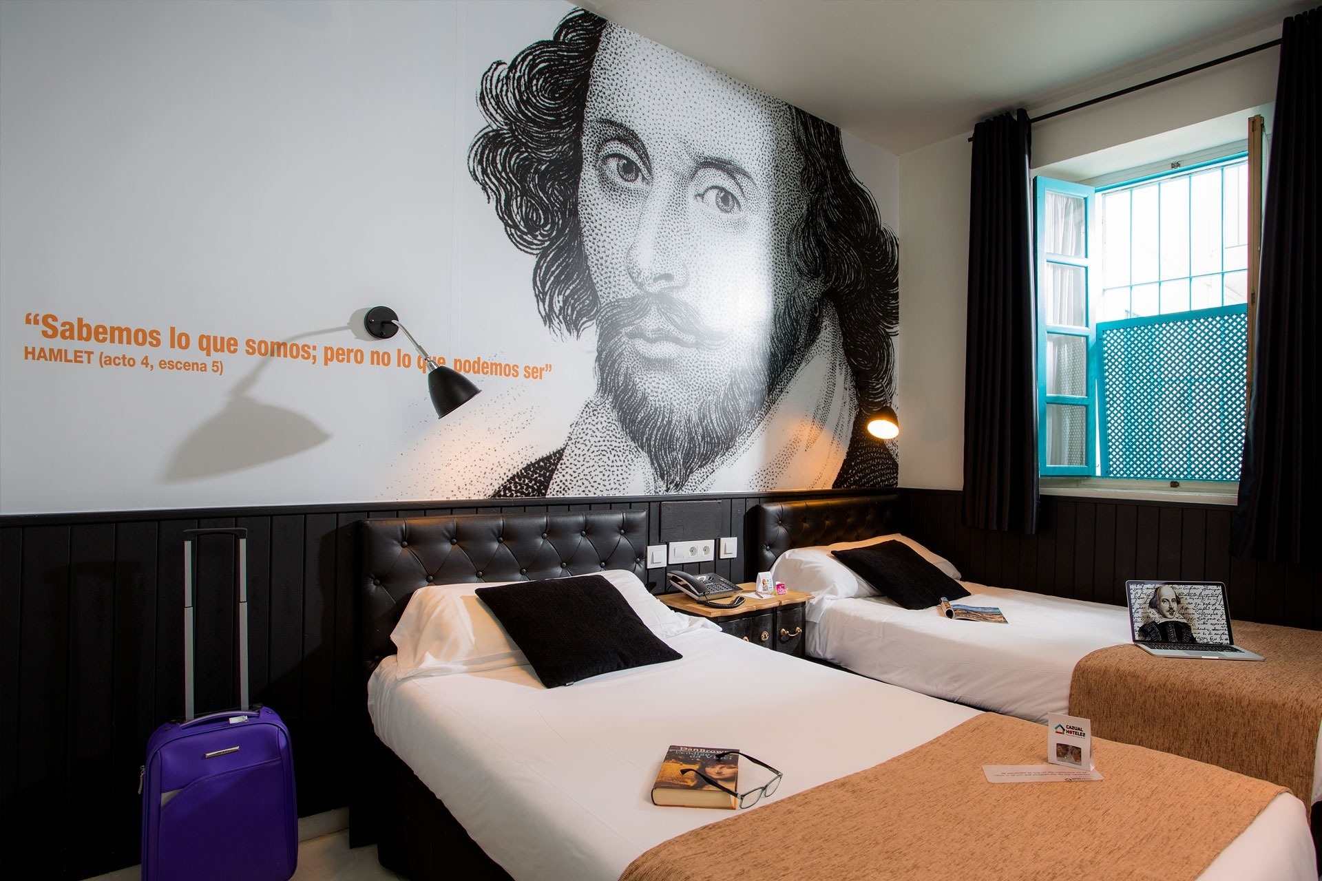 Espace de rêve à partir de 16 m² dans notre chambre double avec deux lits simples. Wifi gratuit, climatisation individuelle et téléviseur LED avec chaînes nationales. Salle de bains et sèche-cheveux. Choix d’oreillers, fer à cheveux et sèche-cheveux professionnel disponibles à la réception. Les chambres sont inspirées des livres qui ont marqué nos vies. Vivez la vôtre.