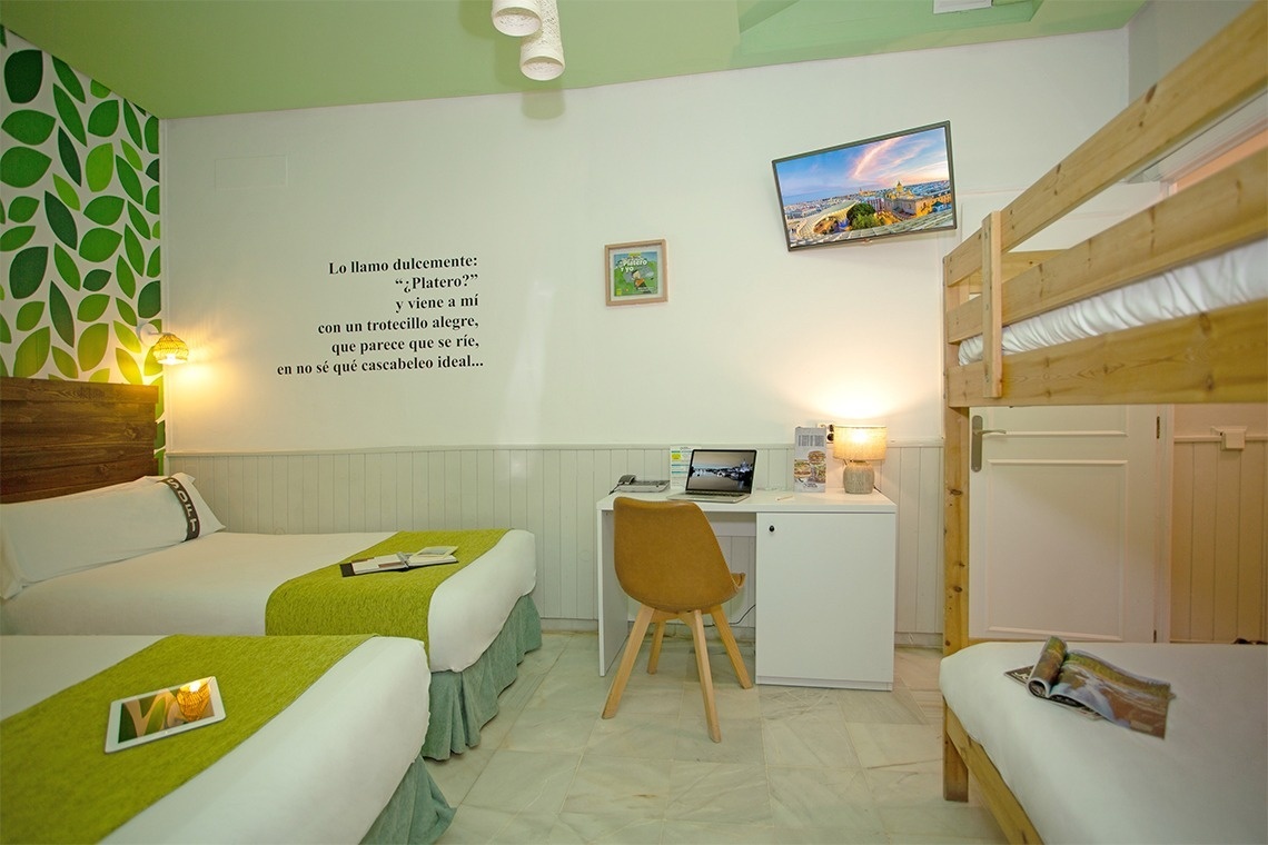 Chez Casual de las Letras Sevilla, la littérature n'est pas dans les livres… elle est sur les murs ! Chacune de mes chambres est décorée selon un livre ou un auteur différent. Envie de dormir à la belle étoile avec « Le Petit Prince » ? Ou plutôt de vivre une expérience théâtrale de Shakespeare ? Ici, vous pouvez choisir votre propre aventure. Et si vous voyagez en famille, nous proposons des chambres pouvant accueillir jusqu'à quatre personnes, car nous savons que les plus belles histoires se vivent ensemble.