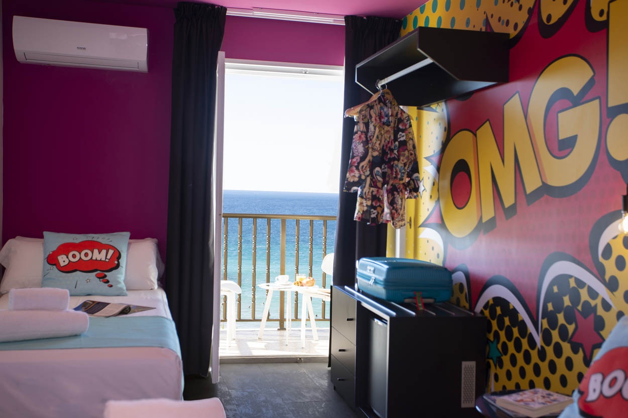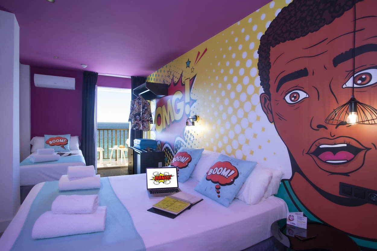 Ik ben het eerste kunsthotel van Benidorm en mijn ziel is beschilderd met de levendige kleuren van de popartbeweging. Mijn muren vertellen verhalen met knipogen naar de meest baanbrekende kunst, terwijl mijn gemeenschappelijke ruimtes een visuele speeltuin zijn waar de Middellandse Zee en popcultuur samenkomen. Ik ben een "WOW!"-ervaring!